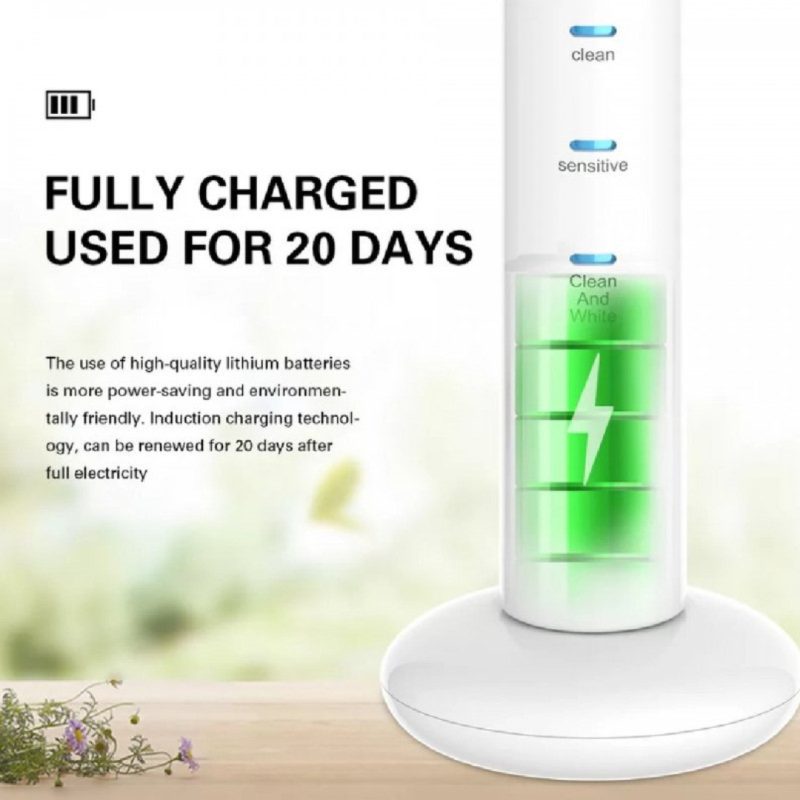 - باتری قدرتمند و بادوام: با یک بار شارژ کامل، میتوانید چندین هفته از مسواک استفاده کنید.