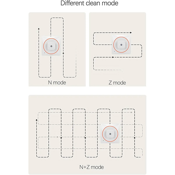 - دو الگوی تمیزکاری: ربات دارای دو الگوی تمیزکاری Z و N است که به صورت خودکار و متناوب اجرا میشوند تا تمام سطح شیشه به طور کامل تمیز شود.